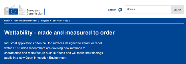 The OYSTER Project has been recognised by the EC Research and Innovation, as a success story through the publication of an article called: “Wettability – made and measured to order”, published on their website. To read the full article, please follow this link.