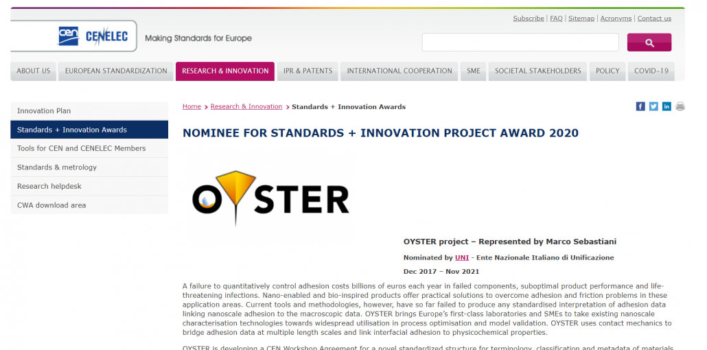 The OYSTER Project was nominated by UNI – Ente Nazionale Italiano di Unificazione, to see this nomination, please follow this link.